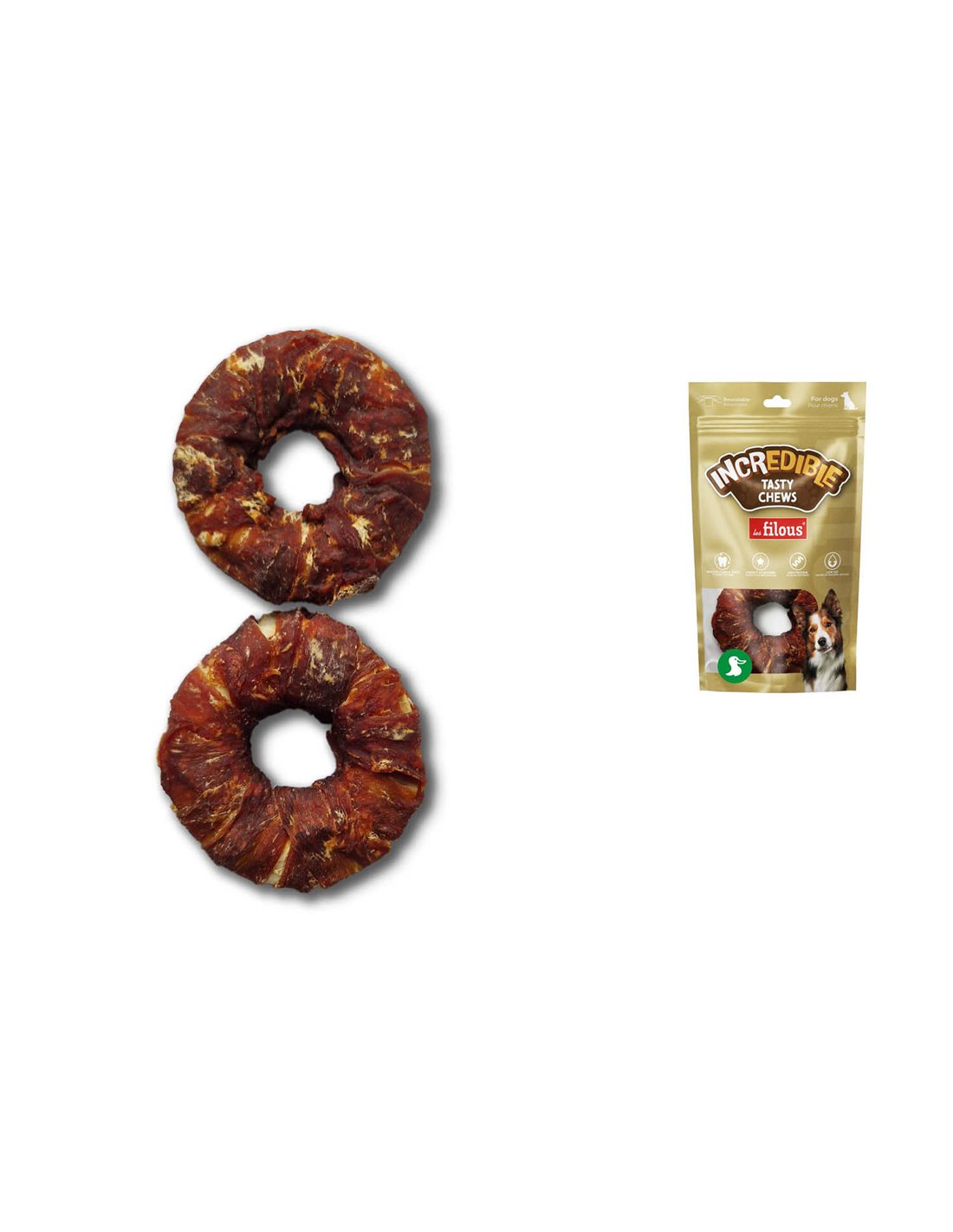 ALTO CONTENUTO PROTEICO E BASSO CONTENUTO DI GRASSI. LA PELLE DI ANATRA ARROTOLATA GARANTISCE LA MASSIMA APPETIBILITA'.